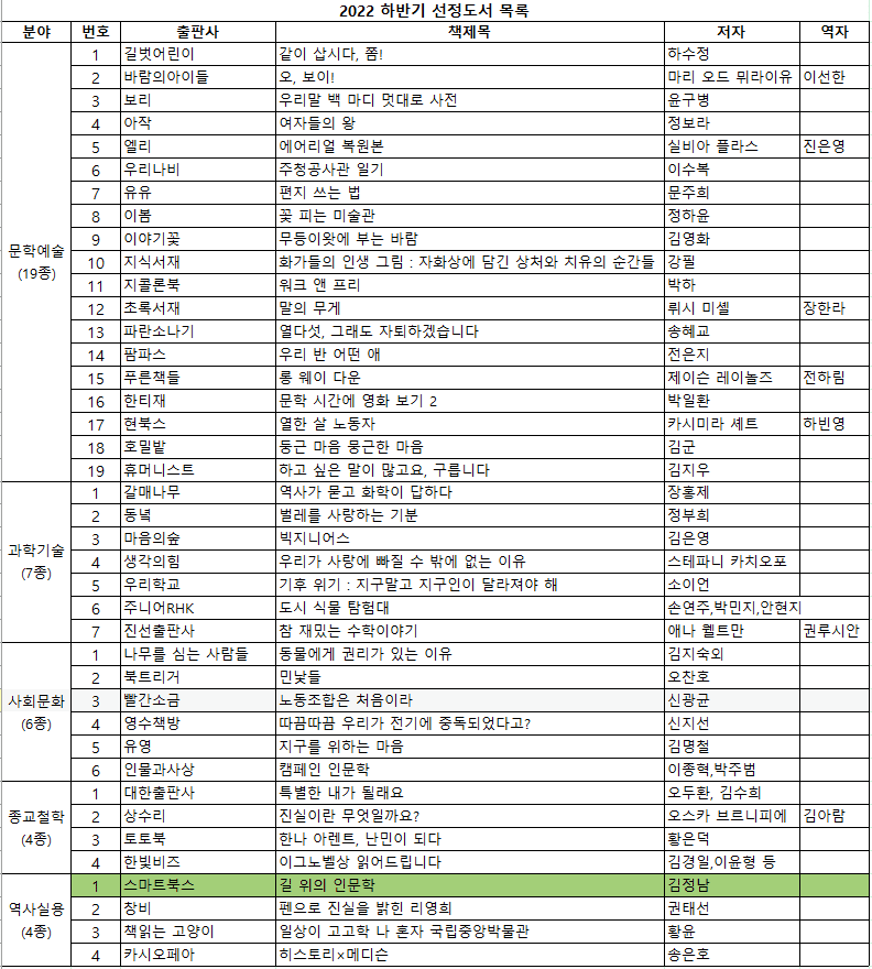 『길 위의 인문학』 2022년 ‘올해의 청소년 교양도서’ 선정