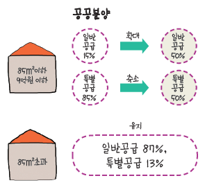 분양가 상한제 민영 아파트도 의무 거주기간 신설 | 신혼부부 및 생애최초 특공, 소득 문턱 낮아진다 | 전매행위 위반자, 청약자격 제한 | 가점 낮은 분 주목! 공공분양의 일반공급 비중 확대 | 낮아진 국민주택 문턱, 공공분양에도 추첨제 도입 | 무주택자 환영, ‘줍줍’ 미계약 물량 신청자격 강화
