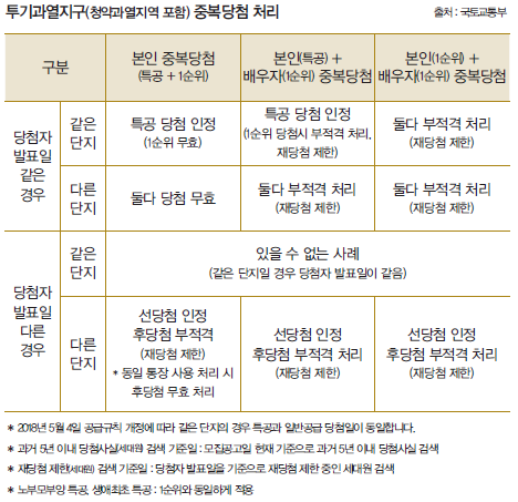 규제지역에서 중복당첨된 경우 | 규제지역과 그밖의 지역에서 중복당첨된 경우 | 일반지역에서 중복당첨된 경우